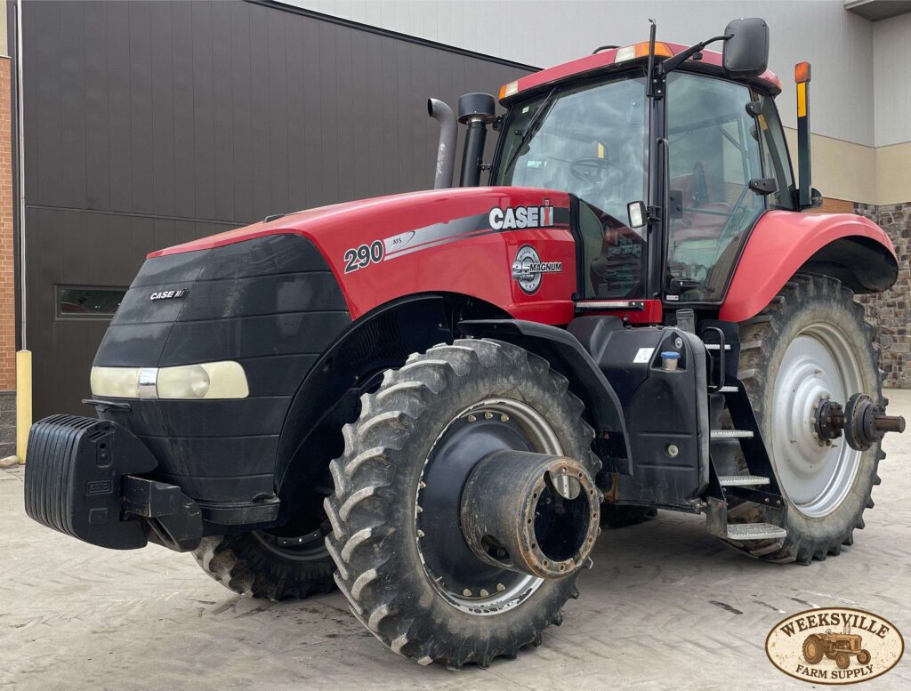 2013 Case IH Magnum 290 MFWD tractor with 3,779 hours. Powered by an 8.7L 6-cylinder FPT diesel engine and 19F – 4R powershift transmission. Equipped with AC/heat, Case IH 372 GPS receiver, AFS Pro 700 display, and WAAS auto steer. Features 1 3/4″ 1000 PTO, three-point hitch with top link and quick attach, ISOBUS and seven-pin outlets, 4 rear hydraulic remotes, and power beyond hydraulics. Includes 10 suitcase weights, duals on 380/80R38 front and 480/80R50 rear tires, rear wheel weights, and a 120″ wheelbase.