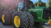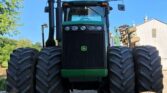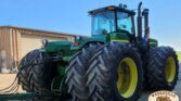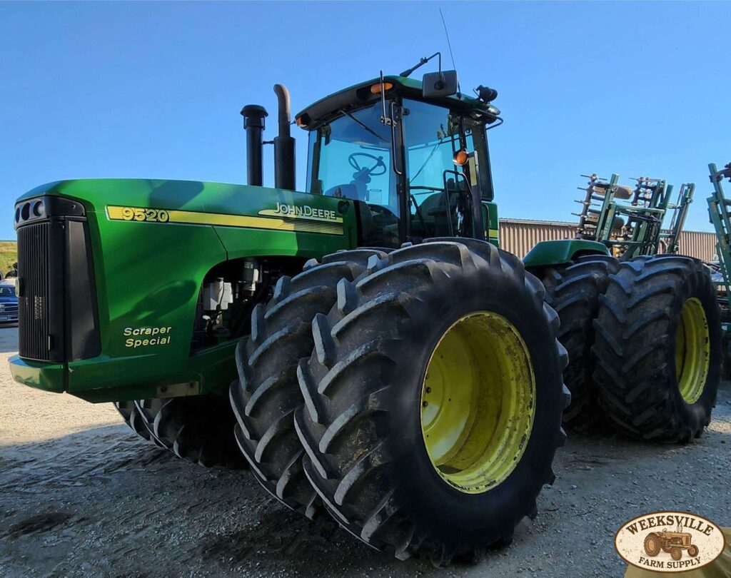 2006 John Deere 9520 Scraper Special 4WD tractor with 3,263 hours. Powered by a 12.5L 6-cylinder diesel engine and 18F – 6R powershift transmission with differential lock. Equipped with AC/heat, seven-pin outlet, ISOBUS outlet, and 4 rear hydraulic remotes. Rides on 710/70R42 dual tires for enhanced traction.