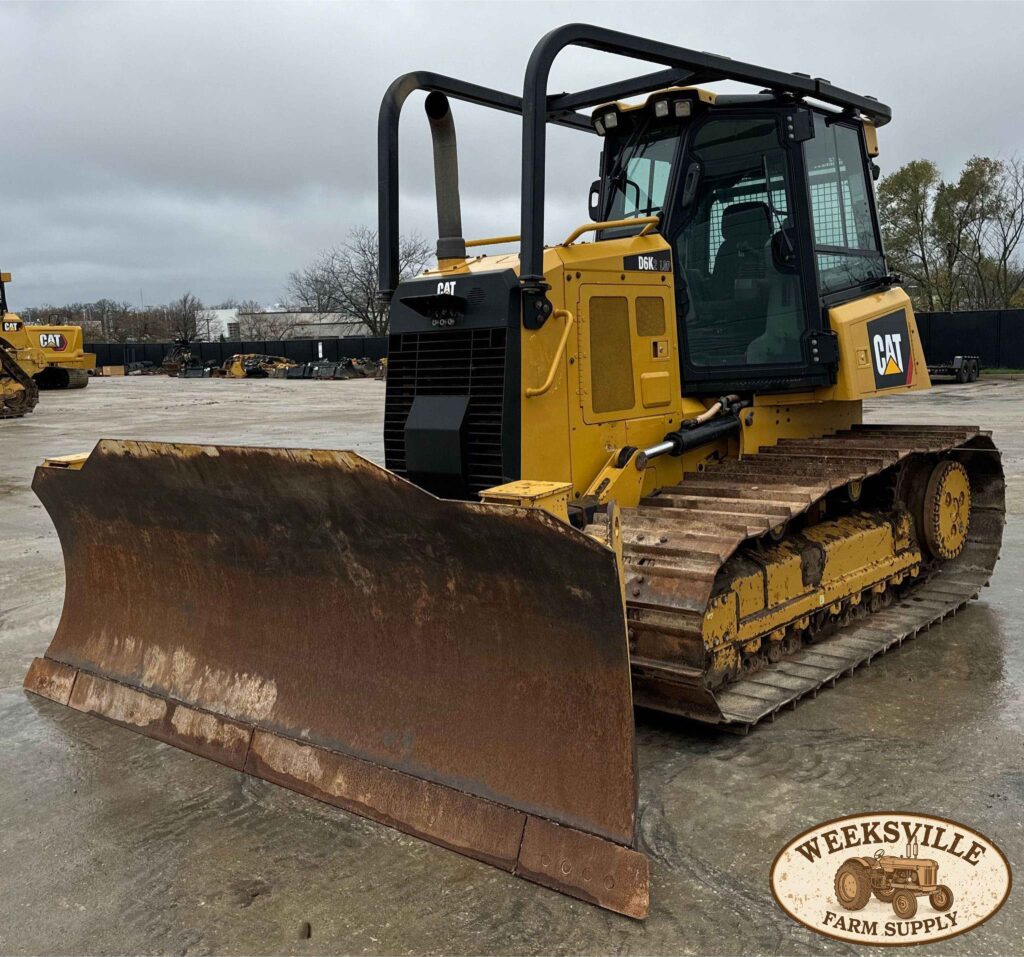 The 2016 Caterpillar D6K2 LGP dozer is equipped with a 4.4L Caterpillar C4.4 Acert diesel engine and has 2,710 hours. It features hydrostatic transmission, an enclosed cab with AC, heat, and a backup camera. The joystick steering controls an 8-roller, 30″ track system with single grouser pads and track guards. The dozer includes a 6-way straight blade (12′ width), screen guards, sweeps, and a rear drawbar. The electronic monitoring system provides performance tracking.
