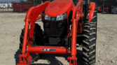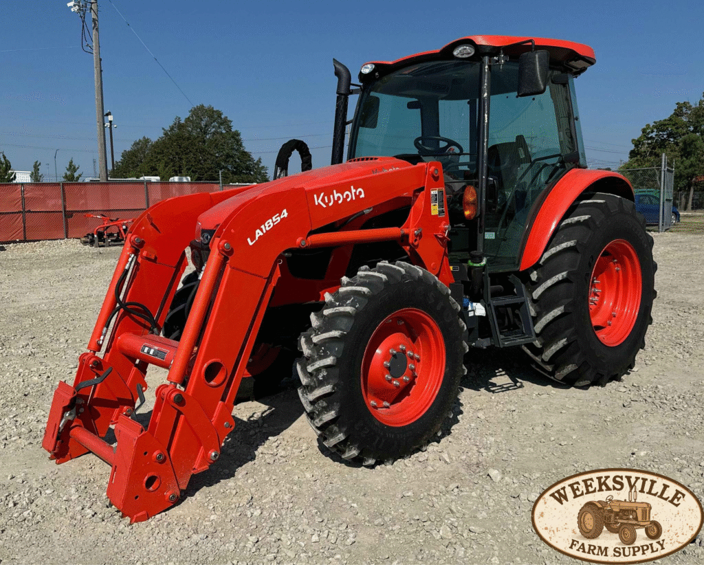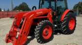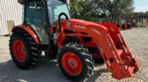 The 2021 Kubota M5-091D MFWD tractor has 202 hours and is powered by a 3.8L Kubota V3800 diesel engine with 92.5 HP and a synchro transmission (8F-8R) with left-hand reverser and differential lock. It features an enclosed cab with AC and heat. The tractor is equipped with a 540 PTO, three-point hitch with top link, seven-pin outlet, and two hydraulic remote sets. It includes a Kubota LA1854 loader with quick attach and joystick controls. The tractor is fitted…